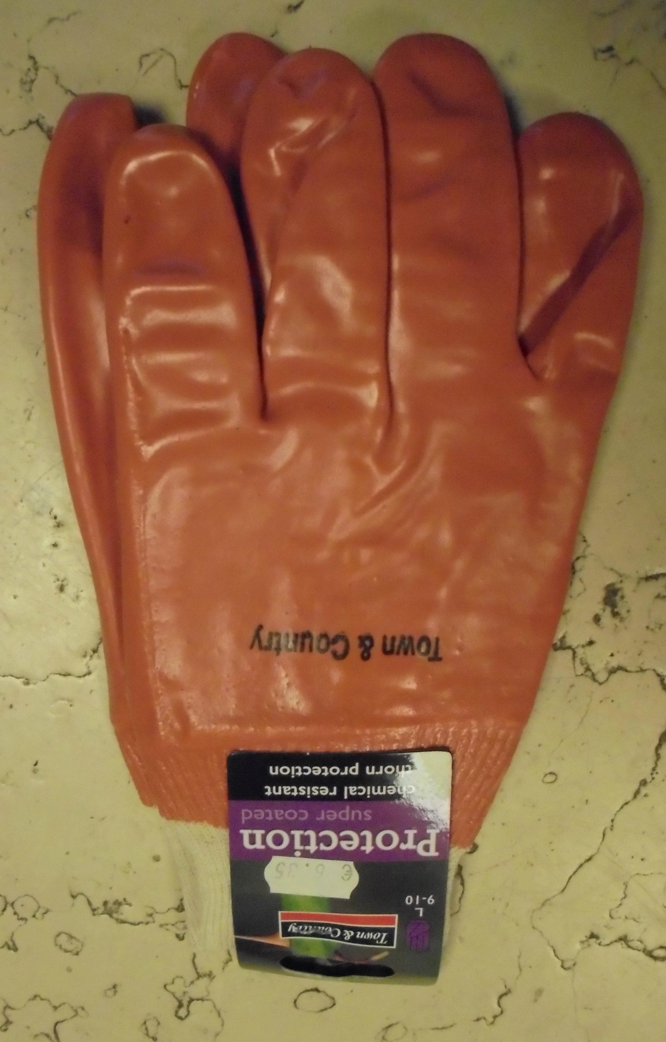 Gloves men with knitted cuff plastic, raincoats.Available in color orange.