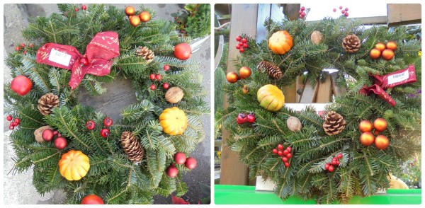 Στεφάνι από φυσικά κλαδιά έλατου,διαμ. 35εκ.,με αποξηραμένες,κολοκύθες ή κουκουνάρια και καρύδια.Επίσης,στολίζεται από κουκουνάρες,μικρές χριστουγεννιάτικες μπαλίτσες και μίνι ρόδια.