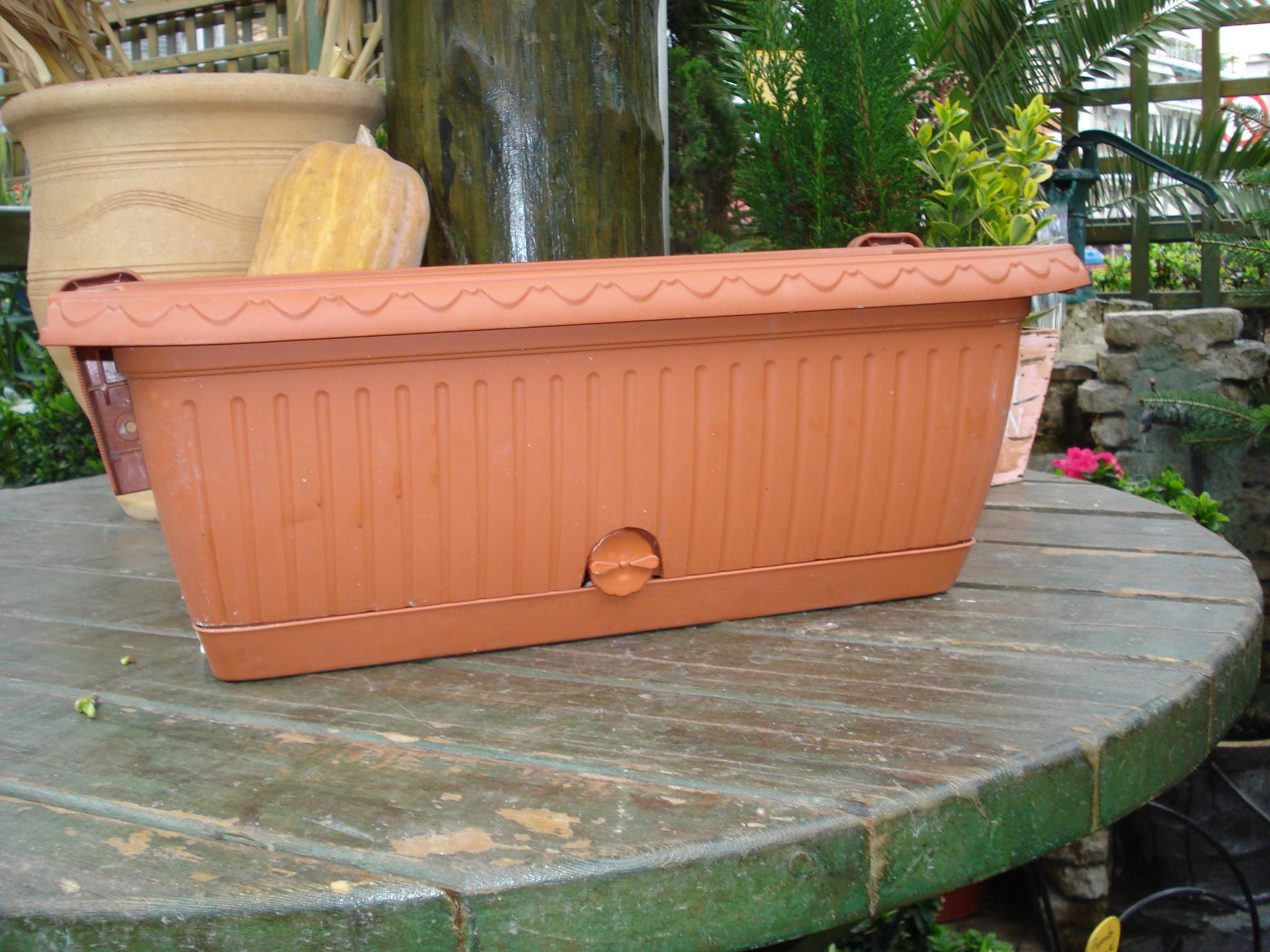 Hanging window box with snap plate and a length of 50cm. Italian design.Available in colors green clay shaving.