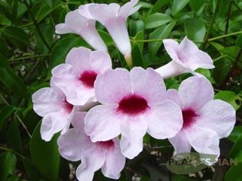 Αειθαλές αναρριχώμενο φυτό με γυαλιστερό φύλλωμα. Ανθοφορεί Φευρουάριο-Ιούλιο με χωνλωδη άνθη. Κατάλληλο για γόνιμα εδάφη, δροσερά και απάνεμα. Αντέχει μέχρι -2/ -4.