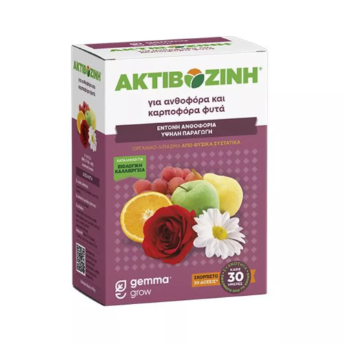 Η Ακτιβοζίνη για ανθοφόρα και καρποφόρα φυτά είναι ένα 100% οργανικό λίπασμα κατάλληλο για όλα τα ανθοφόρα φυτά, κηπευτικά, καλλωπιστικούς θάμνους και δέντρα. Η ισορροπημένη σύνθεση της αλλά και η οργανική της ουσία εξασφαλίζουν στα φυτά του κήπου ή της βεράντας σας πλούσια ανθοφορία, καρποφορία και υγιή ανάπτυξη χωρίς τον κίνδυνο καψίματος. Επιπλέον, η οργανική ουσία βελτιώνει την δομή του εδάφους και ενεργοποιεί τους διάφορους μικροοργανισμούς που δραστηριοποιούνται σε αυτό, με αποτέλεσμα ο κήπος και η βεράντα σας να σφίζουν από υγεία και ζωντάνια.