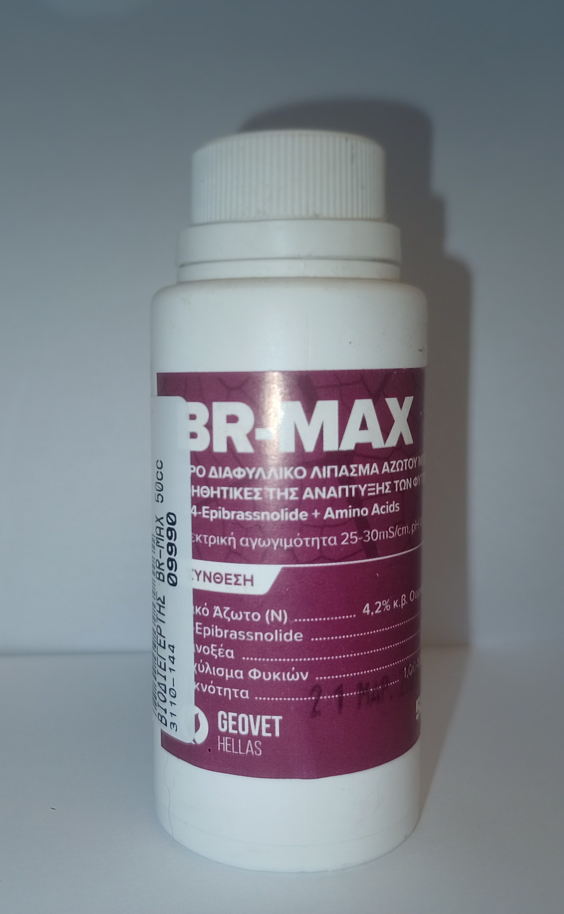 ΤΟ BR-MAX είναι ένα καινοτόμο σκεύασμα ειδικής θρέψης το οποίο περιέχει Άζωτο, φύκια ανώτερης ποιότητας (Ascophyllum nodosum), Αμινοξέα και 24-Epibrassinolide μια από τις δραστικότερες μορφές Μπρασσινοστεροειδών(BR),αυξάνοντας το ρυθμό φωτοσύνθεσης και ενισχύοντας έτσι τη βιοσύνθεση υδατανθράκων στα φυτά και την περιεκτικότητα σε σάκχαρα. Επίσης συμβάλλουν στη μεταφορά αυτών στους καρπούς αυξάνοντας σημαντικά το βάρος τους και βελτιώνοντας τα ποιοτικά τους χαρακτηριστικά.Τα BR εμπλέκονται στην ωρίμανση και στην βελτίωση της ποιότητας των κλιμακτηριακών και μη κλιμακτηριακών καρπών και μεγιστοποιούν την ικανότητα προσαρμογής και αντιμετώπισης αβιοτικών stress (ξηρασία, καύσωνας, αλατότητα, κρύο, βαρέα μέταλλα).