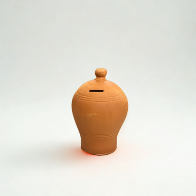 Κουμπαράς πήλινος ύψους 21 εκ. με ανάγλυφο σχέδιο.