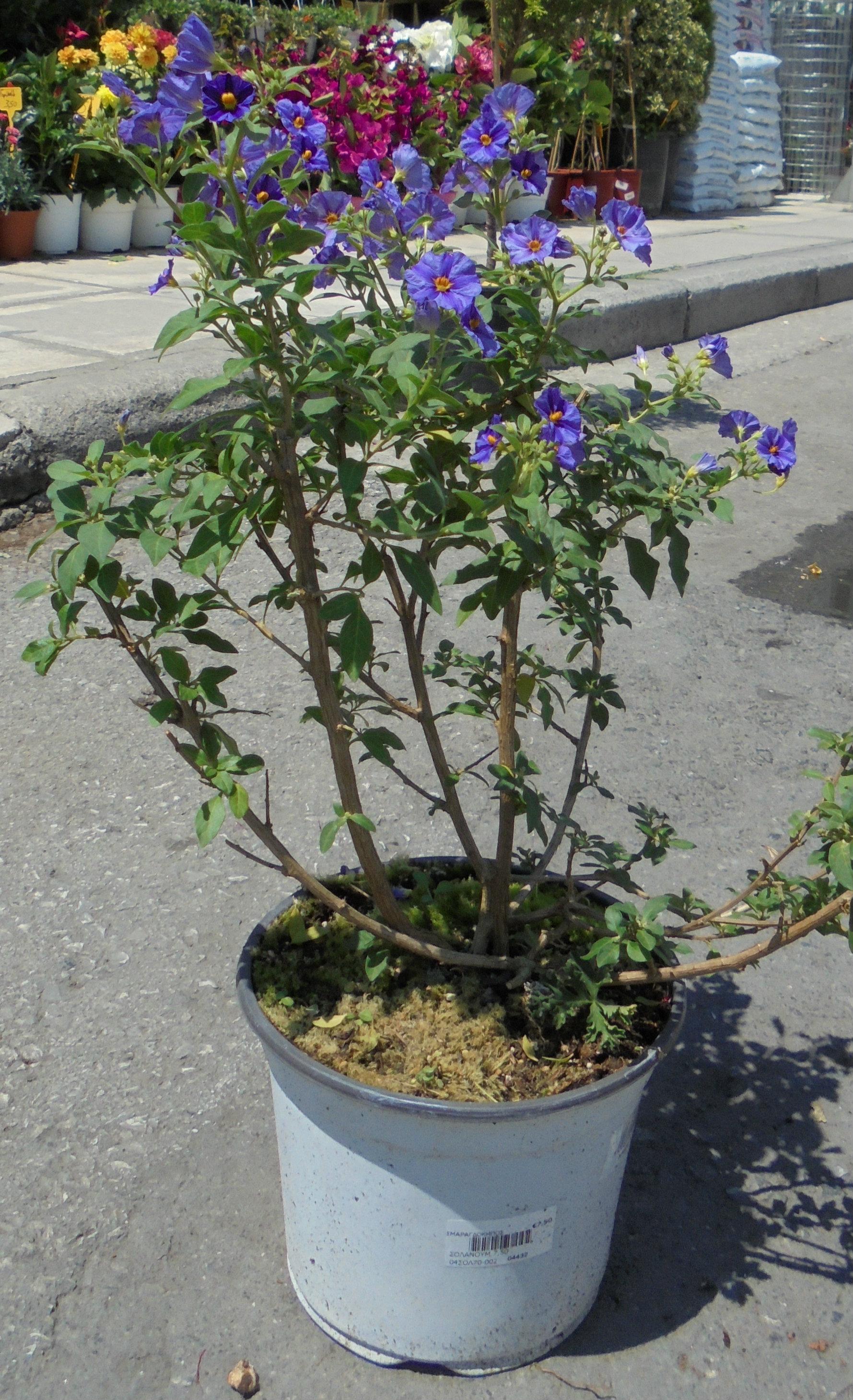 Ημιαειθαλής πόα, ύψους και διαμέτρου 30cm, με πολυάριθμα λεπτά, εύκαμπτα κλαδιά και μακριά ανοιχτοπράσινα φύλλα. Ανθοφορεί Μάιο-Οκτώβριο, με πεντάλοβα χαρακτηριστικά μοβ άνθη με έντονα κίτρινους στήμονες και μωβ γραμμώσεις. Έχει μικρές απαιτήσεις σε νερό και έδαφος, προτιμά τις προσήλιες θέσεις και απαιτεί προστασία ακόμη και από τους ήπιους παγετούς. Κλαδεύεται δραστικά στο τέλος του χειμώνα. Κατάλληλο και για παραθαλάσσιες φυτεύσεις, φυτεύεται μεμονωμένο ή σε ομάδες, σε γλάστρες, συστάδες.