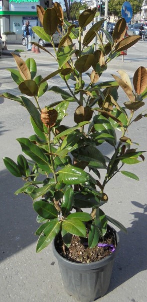 Θάμνος με μεγάλα δερματώδη γυαλιστερά φύλλα, πράσινα στην επάνω πλευρά και κοκκινωπά στην κάτω. Ανθοφορεί άσπρη- κρεμ, Μάιο- Αύγουστο, με μεγάλα λουλούδια. Οι καρποί είναι στρογγυλωποί και όταν ανοίγουν αμφανίζουν κόκκινους σπόρους. Φυτεύεται σε ελαφρά, βαθιά, μη ασβεστούχα εδάφη.