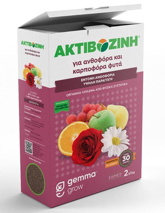 Η Ακτιβοζίνη για ανθοφόρα και καρποφόρα φυτά είναι ένα 100% οργανικό λίπασμα κατάλληλο για όλα τα ανθοφόρα φυτά, κηπευτικά, καλλωπιστικούς θάμνους και δέντρα. Η ισορροπημένη σύνθεση της αλλά και η οργανική της ουσία εξασφαλίζουν στα φυτά του κήπου ή της βεράντας σας πλούσια ανθοφορία, καρποφορία και υγιή ανάπτυξη χωρίς τον κίνδυνο καψίματος. Επιπλέον, η οργανική ουσία βελτιώνει την δομή του εδάφους και ενεργοποιεί τους διάφορους μικροοργανισμούς που δραστηριοποιούνται σε αυτό, με αποτέλεσμα ο κήπος και η βεράντα σας να σφίζουν από υγεία και ζωντάνια.