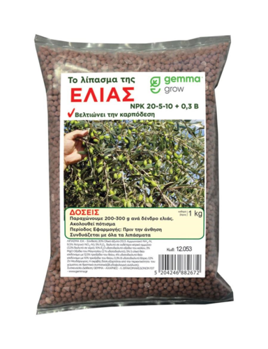Λίπασμα εξειδικευμένο για Ελιές καθώς περιέχει βόριο. Η πλούσια σύνθεση του προσδίδει ανάπτυξη και έντονη ανθοφορία/καρποφορία στις ελιές για αύξηση της παραγωγής. Σύνθεση: ΝΡΚ 20-5-10 (+ B).