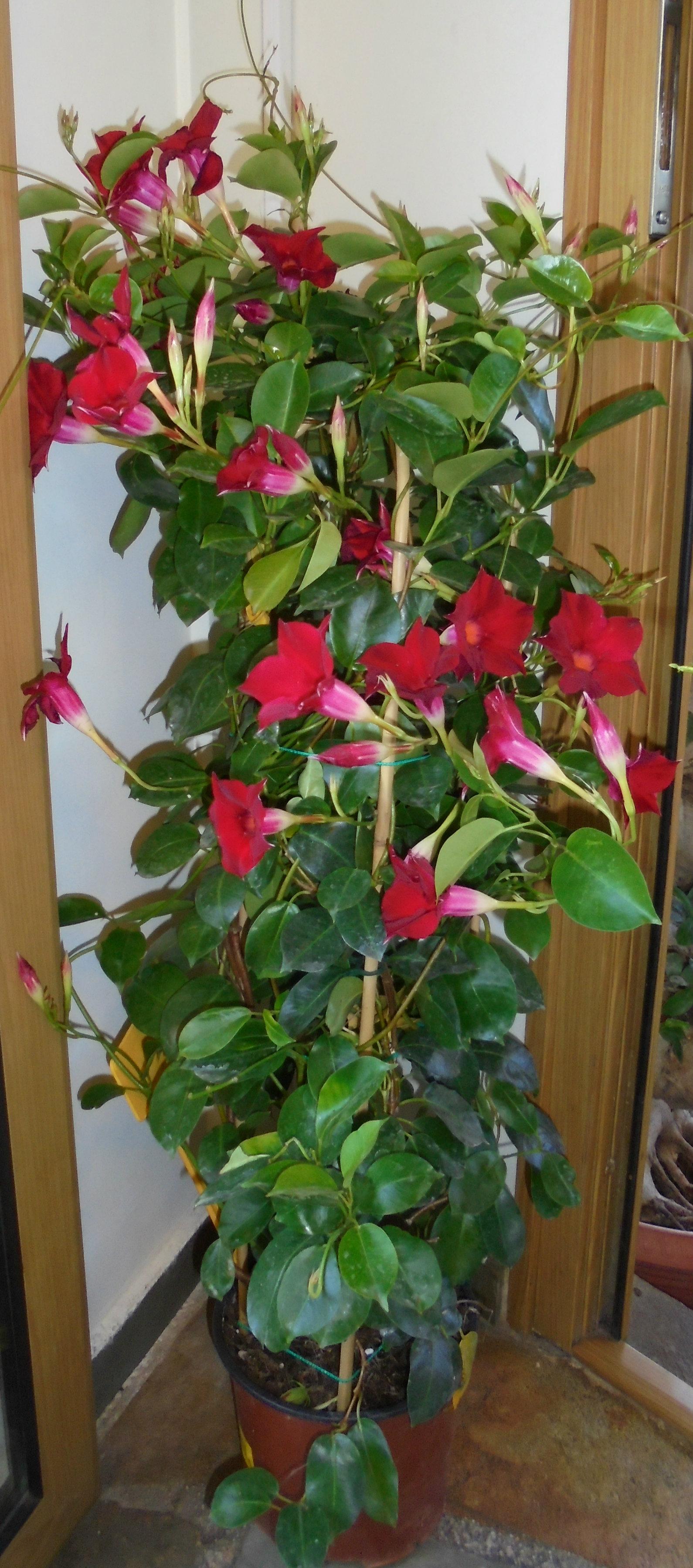 Η Διπλαδένια ή Βραζιλιανικο Γιασεμί είναι ένα ημιαναρριχώμενο φυτό με αειθαλές γυαλιστερό φύλλωμα. Κάνει πολύ εντυποσιακά άνθη 5-6cm σε χρώματα όπως λευκό, κόκκινο, κίτρινο, ροζ. Αναπτύσσεται σε πλούσια, ελαφρά, διαπερατά εδάφη και απάνεμες θέσεις. Αντέχει μέχρι -2/-4 βαθμούς. Κατάλληλο για ημισκιερές και φωτινές γωνιές στο μπαλκόνι σας.