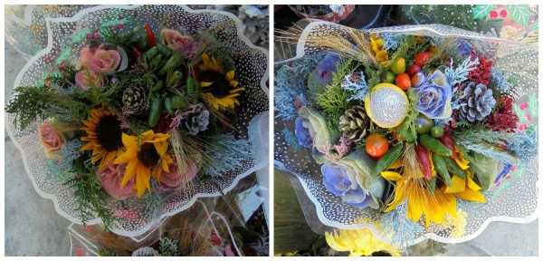 Μπουκέτο από μίξη αποξηραμένων και φυσικών χειμερινών ανθέων,όπως καλλωπιστικό λάχανο και πιπεριά,ηλίανθους,κουκουνάρες,στάχυα και άλλα.Μπορεί να στολίσει το χριστουγεννιάτικο τραπέζι σας δίνοντας του μια ιδιαίτερη νότα.
