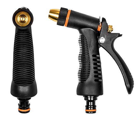 Μεταλλικό πιστόλι ψεκασμού "PROFI" με ορειχάλκινο ρυθμιζόμενο ακροφύσιο. Μπορεί να δημιουργήσει από jet stream μέχρι λεπτή ομίχλη. Με εργονομικό, απαλό κράτημα. Με κλειδαριά για συνεχή εργασία στη μέγιστη ροή νερού.