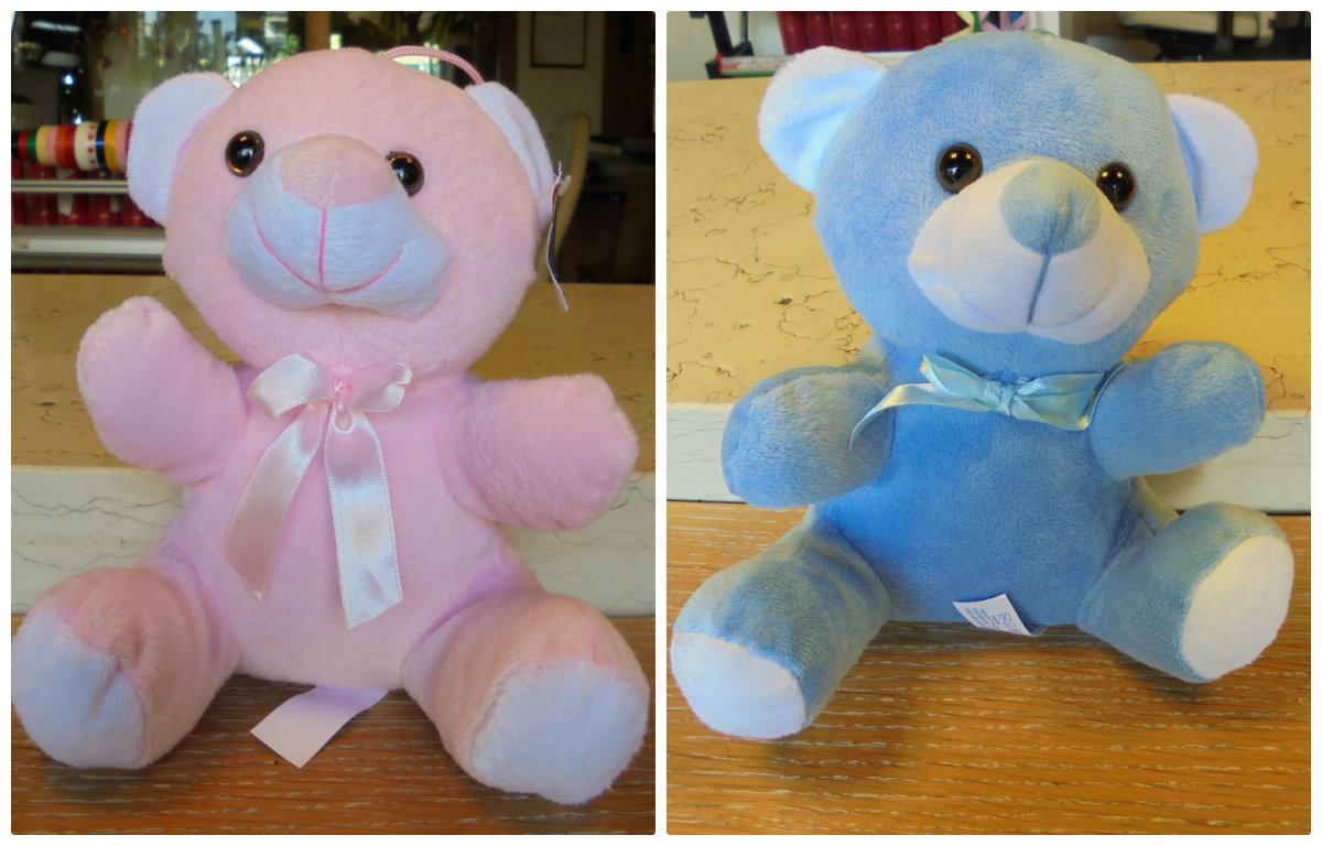 Λούτρινο αρκουδάκι με φιογκάκι σε ροζ ή μπλέ,ύψους 20εκ.Ένα όμορφο δώρο για μια γέννα,συμπληρώνοντας μια ανθοδέσμη ή μια γλάστρα είτε προσφέροντας το μόνο του.