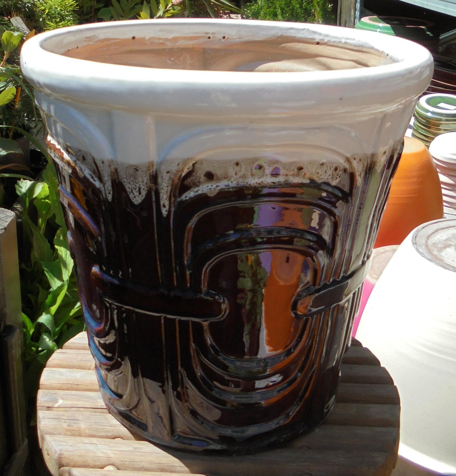 Γλάστρα υαλωμένη,ψημένη στους 800 C και χώρα προέλευσης το Βιετνάμ.Έχουν ωραία και απαλή υφή,με μοντέρνα και κλασσικά σχέδια για κάθε τύπο σπιτιού μέσα ή έξω.Διατίθεται σε σετ των τριών ή και μεμονομένα.