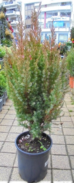 Conical plant height is 3m and diameter 1m. Has dense vegetation fyllomakai bluish silver highlights. Plant in pots or window boxes, rock gardens and gardens. Suitable for semi-shaded areas. Withstand low temperatures and frosts up - 20/-25 degrees.