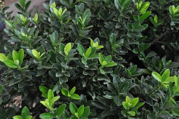 Small evergreen bush with upright shape and small light green leaves. Withstands up to -10 / -15 degrees. Suitable for pots and borders (low fences)