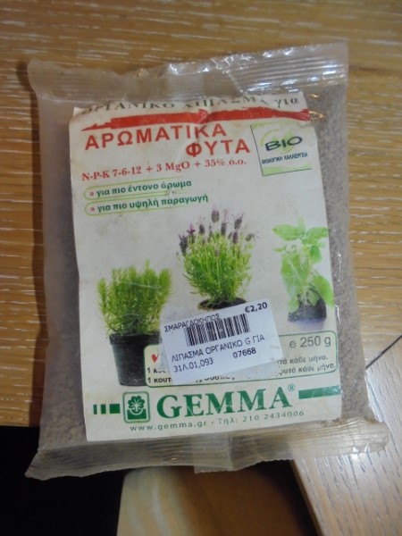 Organic fertilizer for herb plants with nutrients 7-6-12 + 3% Org. Essence.It is used for more intense aroma and for higher production.