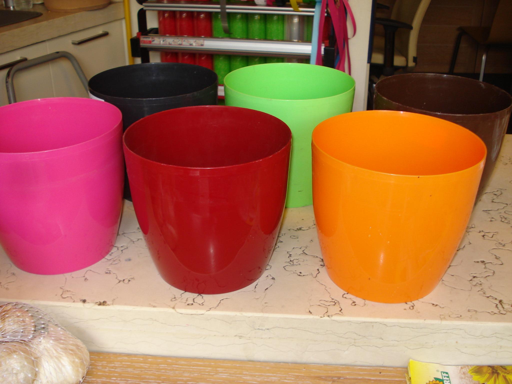 Pot plastic with glossy coating, very good quality and in sensitive.Diam. 16cm. and 14cm. altitude. .Available in white colors, dark pink, lime, green, gkrena, anthracite, orange and chocolate.Recommend especially indoors where our difficult but made drainage holes are used as pots.