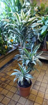 Dracaena with sword-shaped leaves, that bear white streaks. It can reach up to 120-180cm. in height. Dracaena Deremensis needs bright filtered light in order to grow well. It needs ordinary watering and fertilizing with liquid fertilizers every two weeks during its growth. It loves heat and moisture, so the appropriate temperatures for its growth are between 18-24°C.