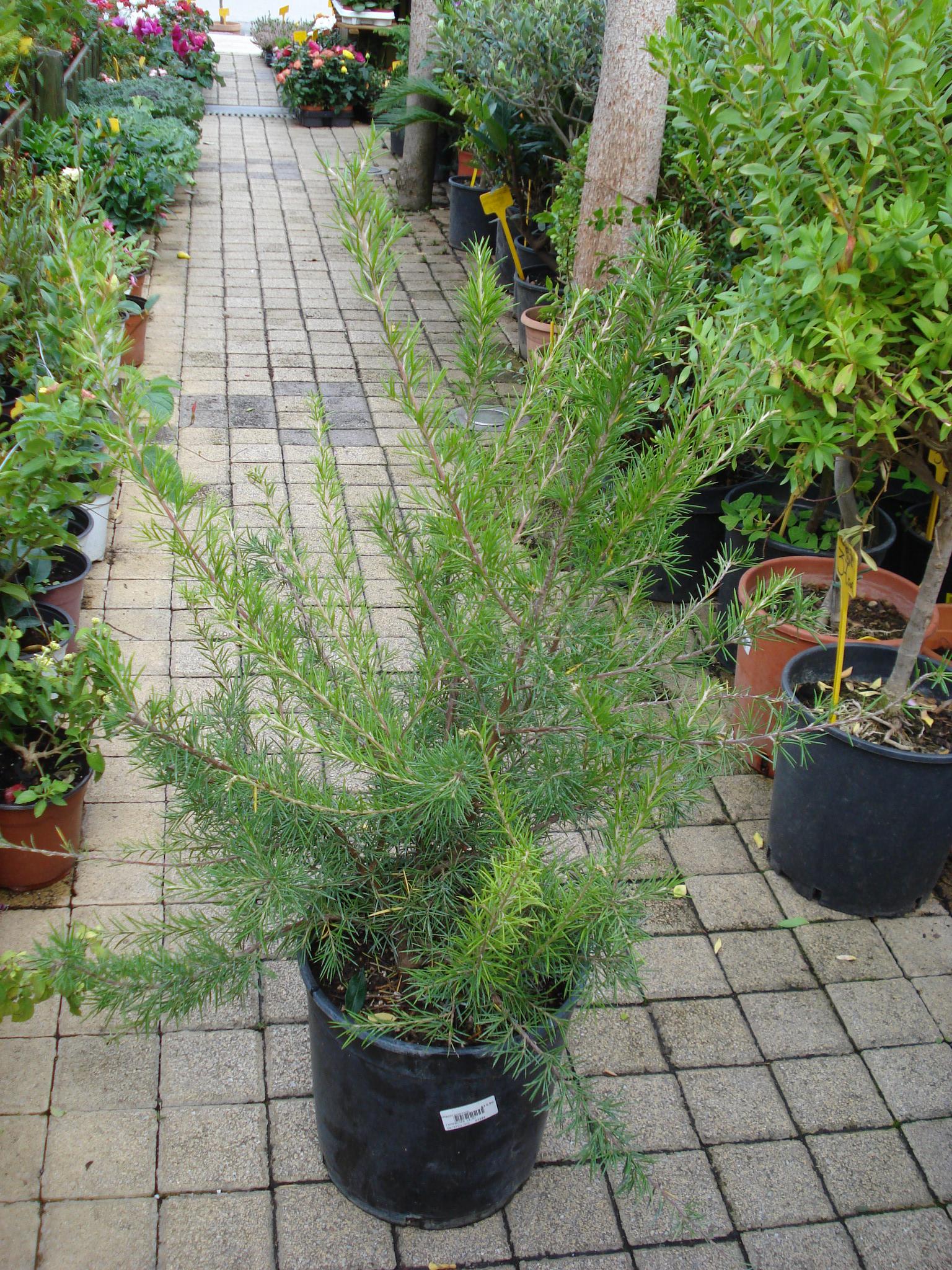 Evergreen foliage spherical shape with radial branches and pale green needles with silvery sheens. Flowering vegetation in the second year, April - July, with deep red flowers. Plant in sunny or semi-shaded, in light neutral soils.