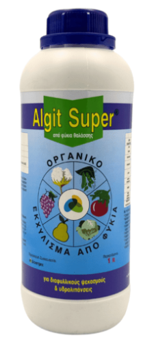 The Algit-Super is a natural product obtained by alkaline hydrolysis of seaweed Ascophyllum Nodosum.Contains over 60 primary and secondary nutrients, proteins, carbohydrates, amino acids and stimulants growth.The composition is: algae product: 7.5% (60% organic matter) and dyalytes-inactive: 92.5% .Combined with all common fertilizers and agricultural drugs.All the substances contains are natural and harmonious relationship thus fully absorbed by plants or intersex either the root.