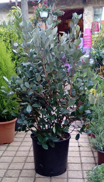 Upright evergreen shrub. Forming round leaves, green in the upper surface and the lower gray fluffy. Flowering July to August, with wonderful flowers composed of fleshy white petals and long red stamens. Autumn fruiting edible fruit, which give off a pleasant smell, like that of pineapple. Plant in sheltered positions sunward, while shen has claims to territorial recommendation. Is used single or in groups or clusters. Holds up to -6 / -12 degrees.