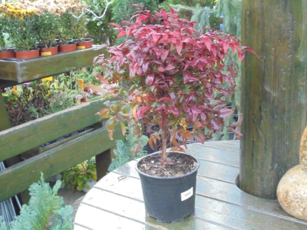 Evergreen, compact shrub, that reches the height of 0,80cm. It bears complex, light green leaves that turn deep red in autumn and very decorative red berries, held throughout the winter. Equally impressive is its flowering in the summer, with a complex of white flowers. Plant resistant to calcareous soils and suitable for coastal areas. It prefers fertile and well drained soils and it can be planted individually in balconies, gardens and rock gardens. It can withstand temperatures as low as -20°C.