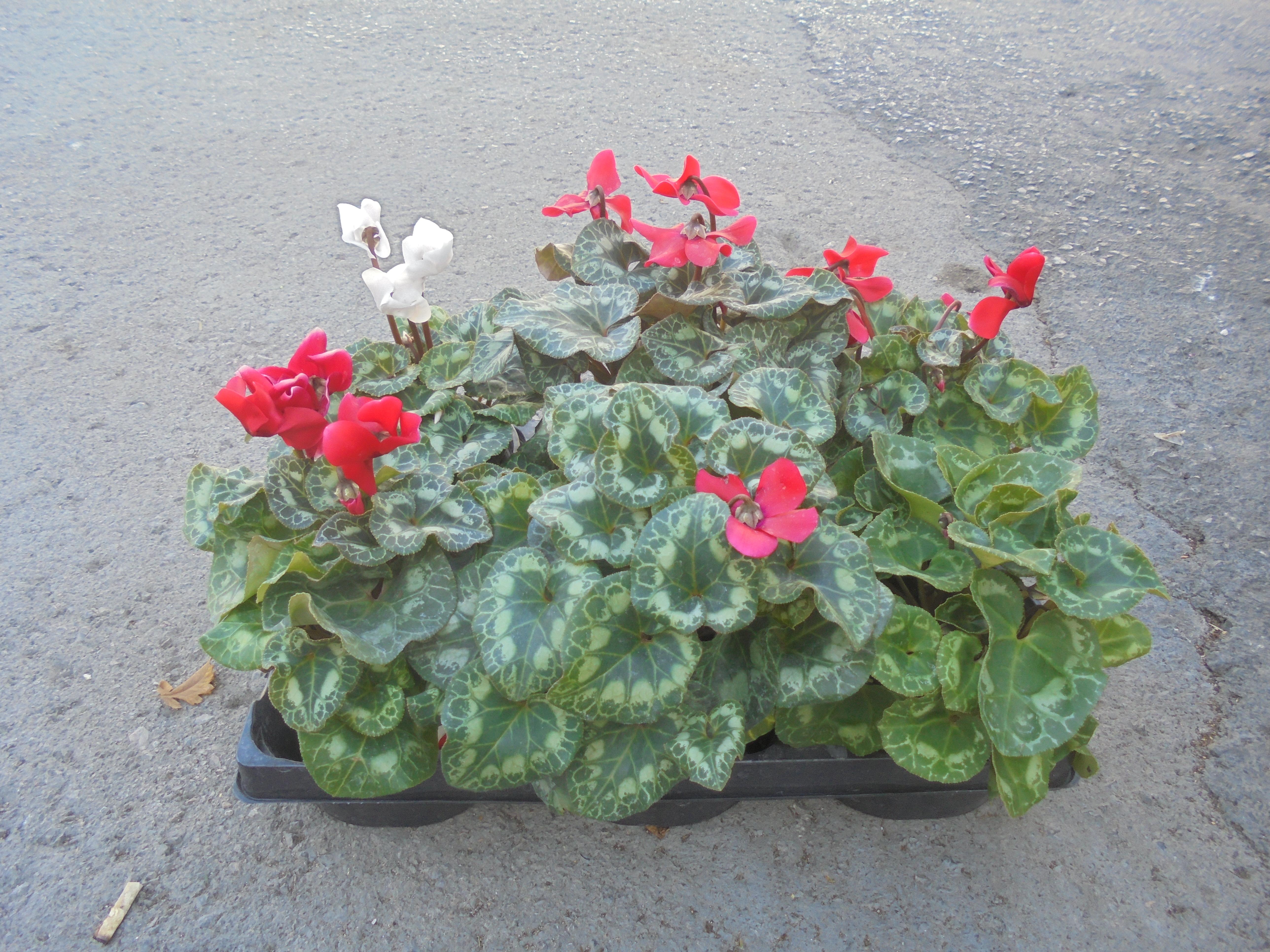 Bolbus plant,with large heart-shaped leaves flowering from early autumn until spring.Cyclamens are durable in winter's low temperatures up to -5°C. Its flowers can be white, red, pink etc.It needs filtered light but not intense sunlight that can burn its leaves.