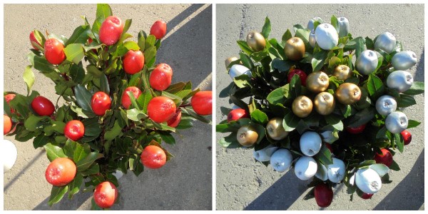 Apples painted on a natural twig arbutus.Available in various colors such as red, gold, silver and white.It's a beautiful and special Christmas decoration for your jar or Christmas flower compositions.
