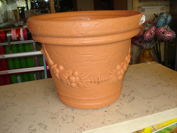 Plastic pot in double-walled clay imitation, embossed shagreen. Diam. 45cm. Alt. 35cm.