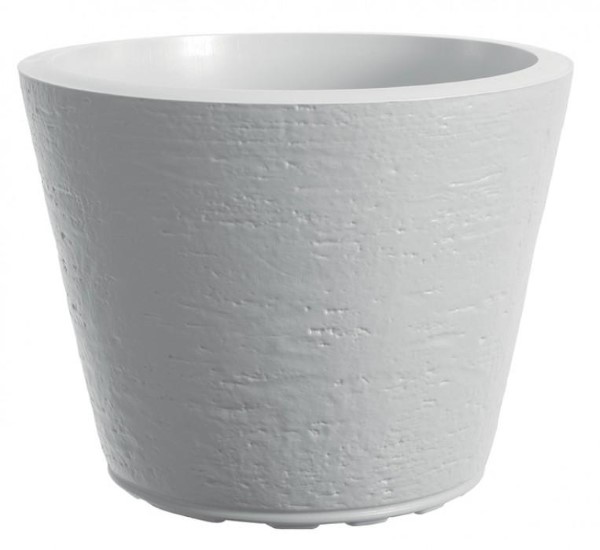 Planter with imitation of stone texture, high quality.Diam.40cm.,H.30cm. and 26 litr.Available in white-gray-tan-terracotta.It's a perfect pot that can be used as a cachepot, adjusted both for indoors and outdoors.