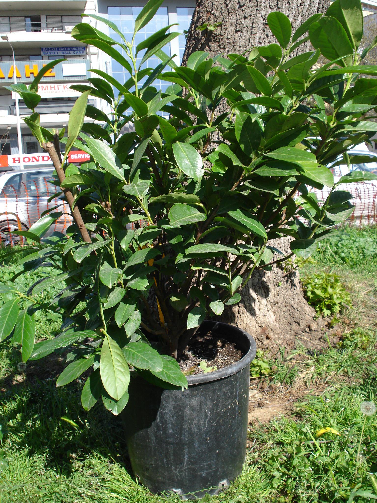 Large, evergreen shrub with large, green, leathery and glossy leaves. It has white, fragrant flowers in erect, cylindrical inflorescences in mid and late spring and reddish fruits in summer. Plant is ideal for gardens, patios and fences. Withstands sunny, shaded, semi-shaded and coastal areas.