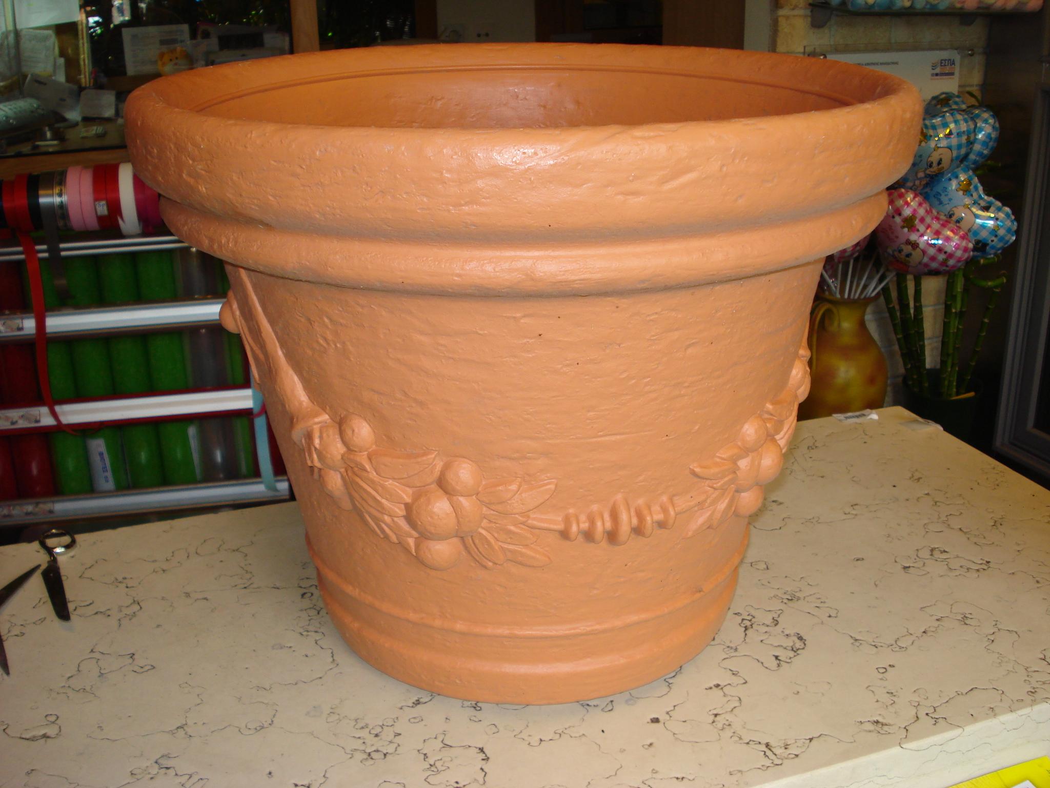 Plastic pot in double-walled clay imitation, embossed shagreen. Diam. 50cm. Alt. 40cm.