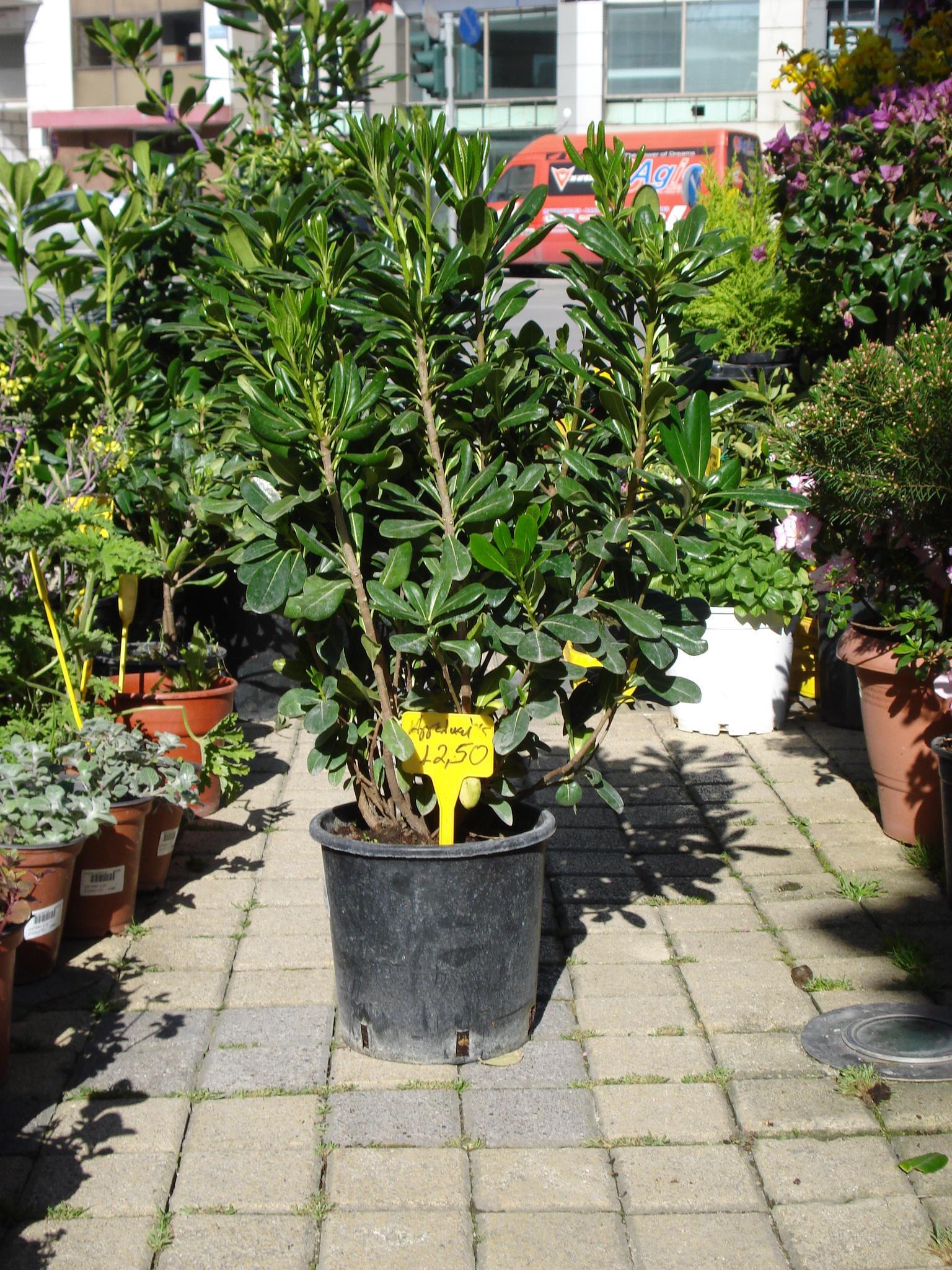 Evergreen shrub very common in Mediterranean countries with a maximum height of 3-4m in diameter from 1.50 to 2.50 m. Leathery, deep green foliage with rounded edges,it has creamy-white flowers in April-May. It fits easily in sunny, semi-shaded and shaded areas. Suitable for coastal planting. Planted singularly, in groups, and potting medium height fences. Withstands temperatures up -8/-10 ° C.