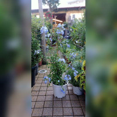 Partially deciduous climber plant. It has long upright branches and develops lush and dense growth with green foliage. It blooms with very beautiful blue-light blue flowers in small clusters. Its flowering period appears from May to November, while during the winter it turns red and sheds its leaves. Suitable for sunny locations in all soils, including alkaline ones. It requires abundant watering in the summer. It is planted in groups, small hedges, and planters. It can withstand temperatures down to -4/-5°C.