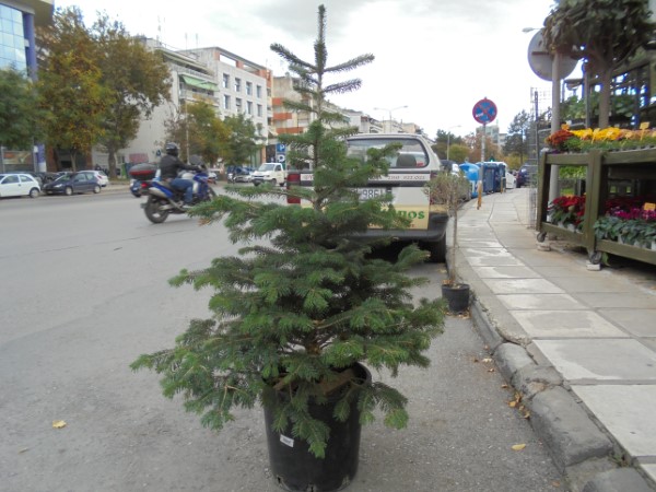 Conifer tree that forms a symmetrical pyramid moderate growth. It reaches a height of 15-20m and 2,50-3m in the first 10 years. Diameter 3-5m. Bears flat and narrow needles with intense blue and the top surface with a strong central argyroprasini the lower rib. The bark is smooth and gray. Very durable and suitable for medium gardens or parks.