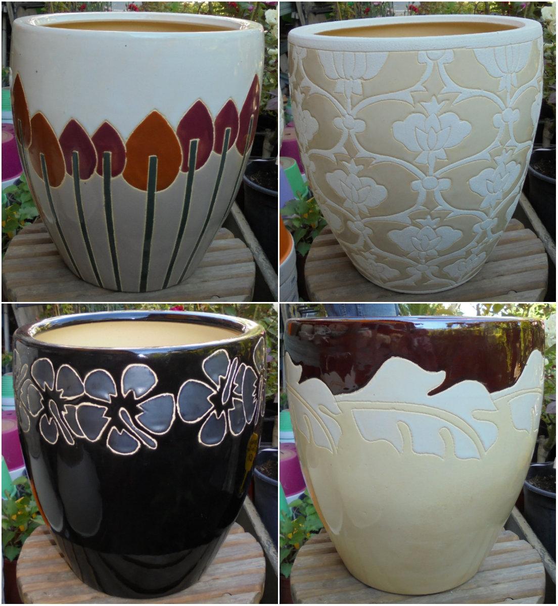 Glazed clay pot, baked at 800°C,country of origin Vietnam.They have nice and smooth texture, with modern and classic designs for any type of home inside or balcony.Available in sets of three or singularly.