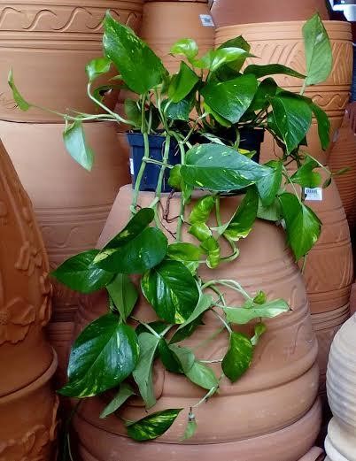 Houseplant.Its leaves are heart-shaped sprout alternately throughout the length of the branches and their size varies dramatically depending on the age of the plant.Adult plants have a few small greenish colored flowers .According to surveys of Nasa,Epipremnum Aureum absorbs harmful substances hovered indoors, clearing the atmosphere.Without many requirements, prefers the heat and withstands high temperatures.Enough moisture is essential.