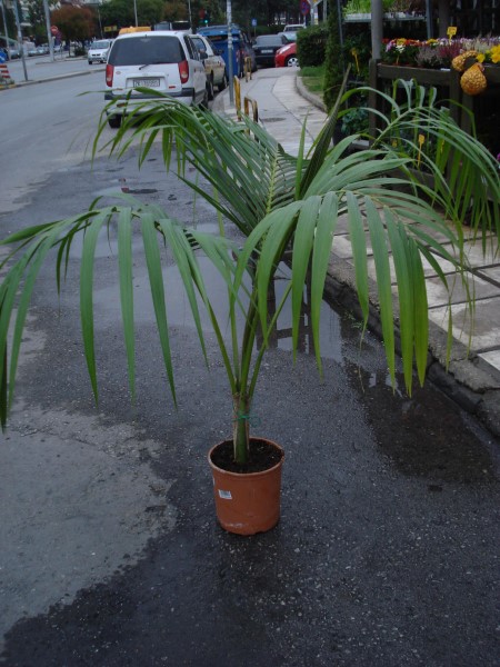 Perennial plant with dark green foliage, thin trunk from which begin long stalks with palms leaves.Characteristic of the plant is that its leaves turn brown.It is usual of Kentia to present brown spots on the foliage.In most cases, this is due to water containing much salt, so it is recommended distilled water.Also, Kentia needs moderate lighting and temperature.Episis should the point that we have not to touch the leaves of Kentia.Water Kentia infrequently.