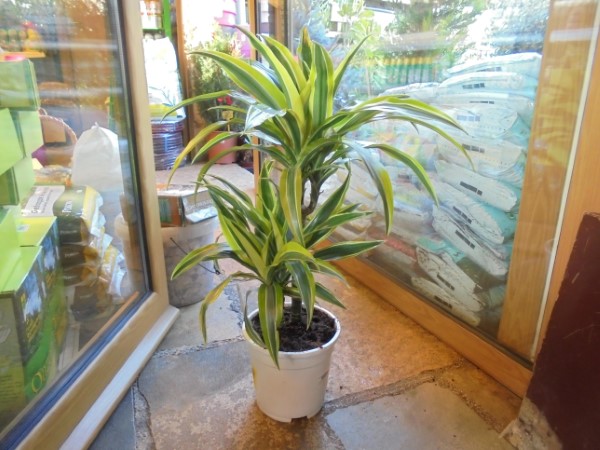 Plant tree with bicolor pointy foliage,that belongs to the of family of Liliidon. Very resistant plant, .Keep it away from drafts and away from heat.Needs regular watering and moderate light.Because it needs moisture,sprayoften its leaves with water.Dracaena combine very easily in the same pot with other green or flowering plants that it would have a lower height that gives space to the plant to room to stretch out its leaves. Ideal temperature for Dracaena Lemon is 18 to 30 degrees Celsius.