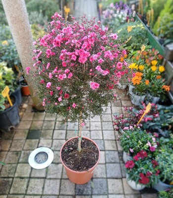 Evergreen shrub with small elongated green leaves. There are varieties with large differences in size, but the most famous are the varieties of moderate growth 1-1,50m. height and diameter 0,80-1,20m. Produces abundant, small, simple or double flowers, pink-red or white along the branches. Prefers sandy and acidic soils and sunward or imisieres positions. Planted in pots, clusters or groups. Holds up to -4/-6 degrees.