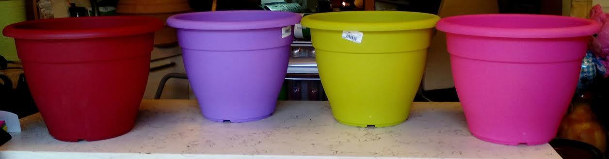 Colourful pot of MILTOPLAST,diam.29cm. in a big range of colours:light green,yellow,orange,pink,purple,dark red,grey and black.
