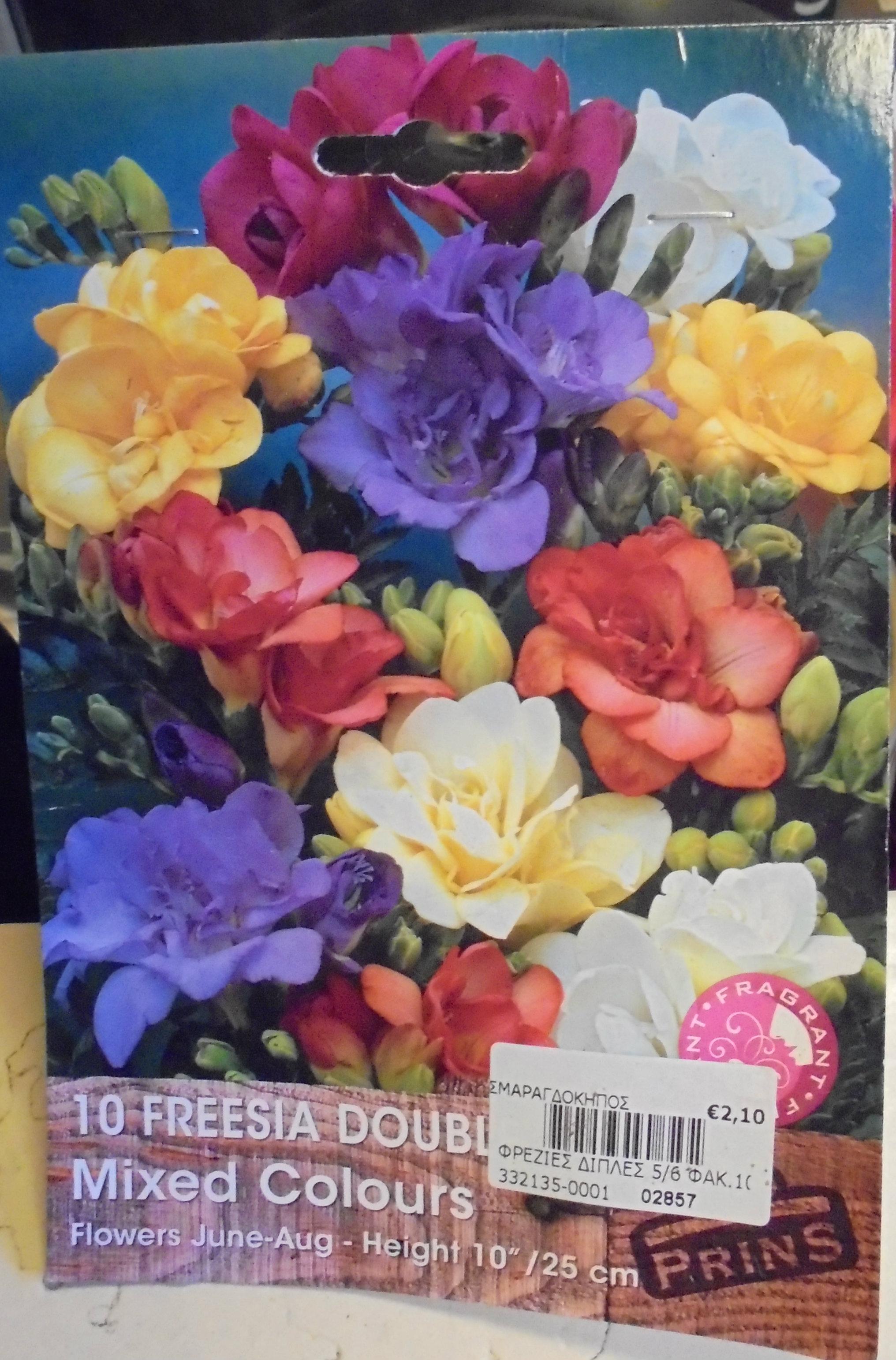 Freesias have different colors where each package contains 10 bulbs.They have small bulbs that bloom from February to April, while the adult plant's flowers last for about a month.You can plant the bulbs of freesia both directly in your garden and at pot.A good planting depth for bulbs are 2.5 to 5cm, with about 8.10cm. apart. Better to put the bulbs to the sunlight or to a slight shadow.