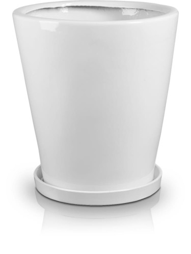 Glazed clay pot diam. 38cm. in white color, ideal to decorate your home.Pot plate included.