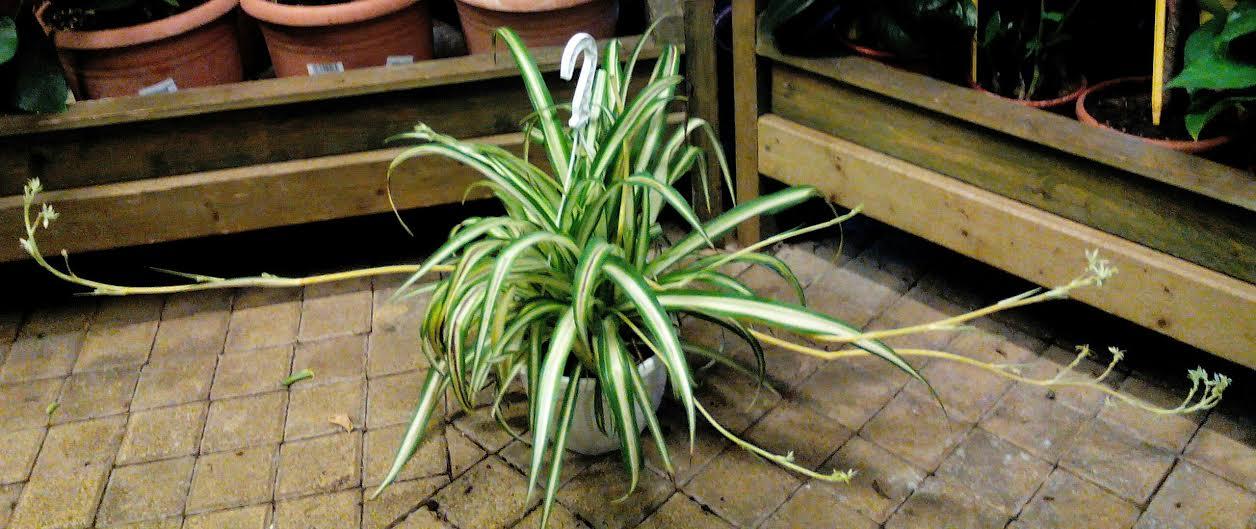 Tropical plant with oblong cream with green outline fylla.It's leaves grow quickly, developing dense rosettes reminiscent grass.It is ideal for hanging pot. Older plants earn long vines with small white flowers.Chlorophytum cleans the atmosphere of the room in which it is located. It's easy in cultivation, needs enough light, as in dark it;s leave;s colour fades away.Survives equally in cool and heated enviroment.Water Chlorophytum normally to very depending on the room temperature. If the atmosphere is dry, remember that the occasional sprinkling of leaves improve.
