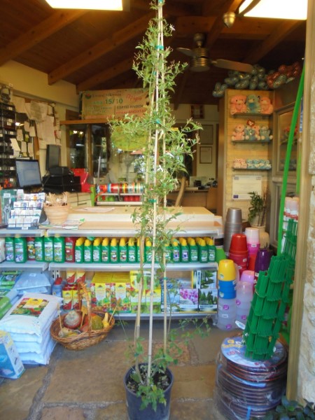 Tortuous climbing plant that can reach 10-12m height. Evergreen with opposite compound leaves with 5-9 thick dark green leaves. Flowers white, fragrant, joined in groups of 3-8 at the ends of the branches from April to November. Hard plant resistant to cold (0 /-5°C).
