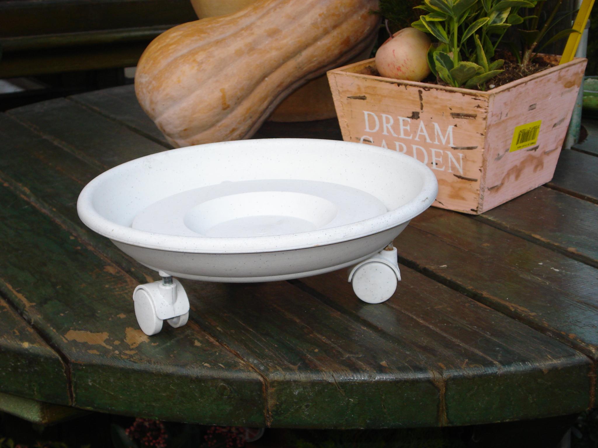 Plate with wheels No.01.28 Silk Plast, diam. 28cm. Available in colors terracotta, white- granite, cypress.