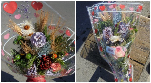 Bouquet of mixed dried and natural winter flowers such as ornamental cabbage and peppers, sunflowers, pine nuts, wheat, and else.Ιt can be decorative your Christmas table giving it a special touch.