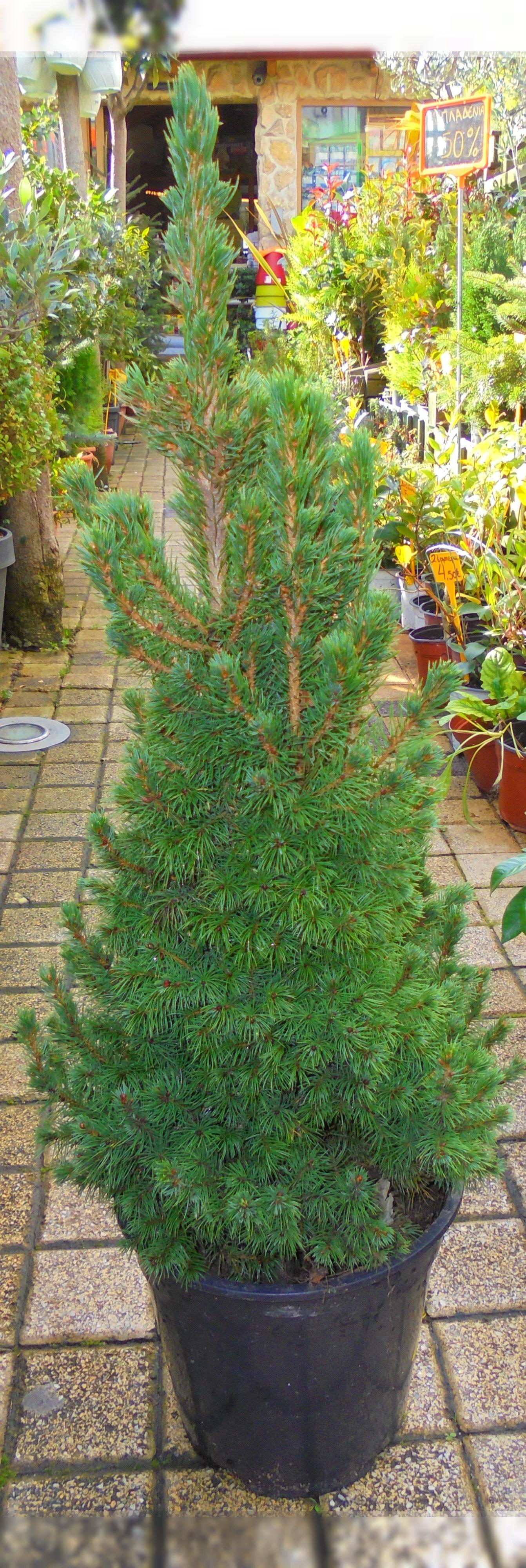 Conifer plant looks symmetrical pyramid development.It reaches moderate speed at a height of 10-12m and a diameter of 5-6m.It has nice, glaucous, slightly descending foliage and hanging auburn konous.Suitable for sunny areas.It is planted in small gardens and glastres.It holds at low temperatures and frosts up to -15 to -25 degrees.