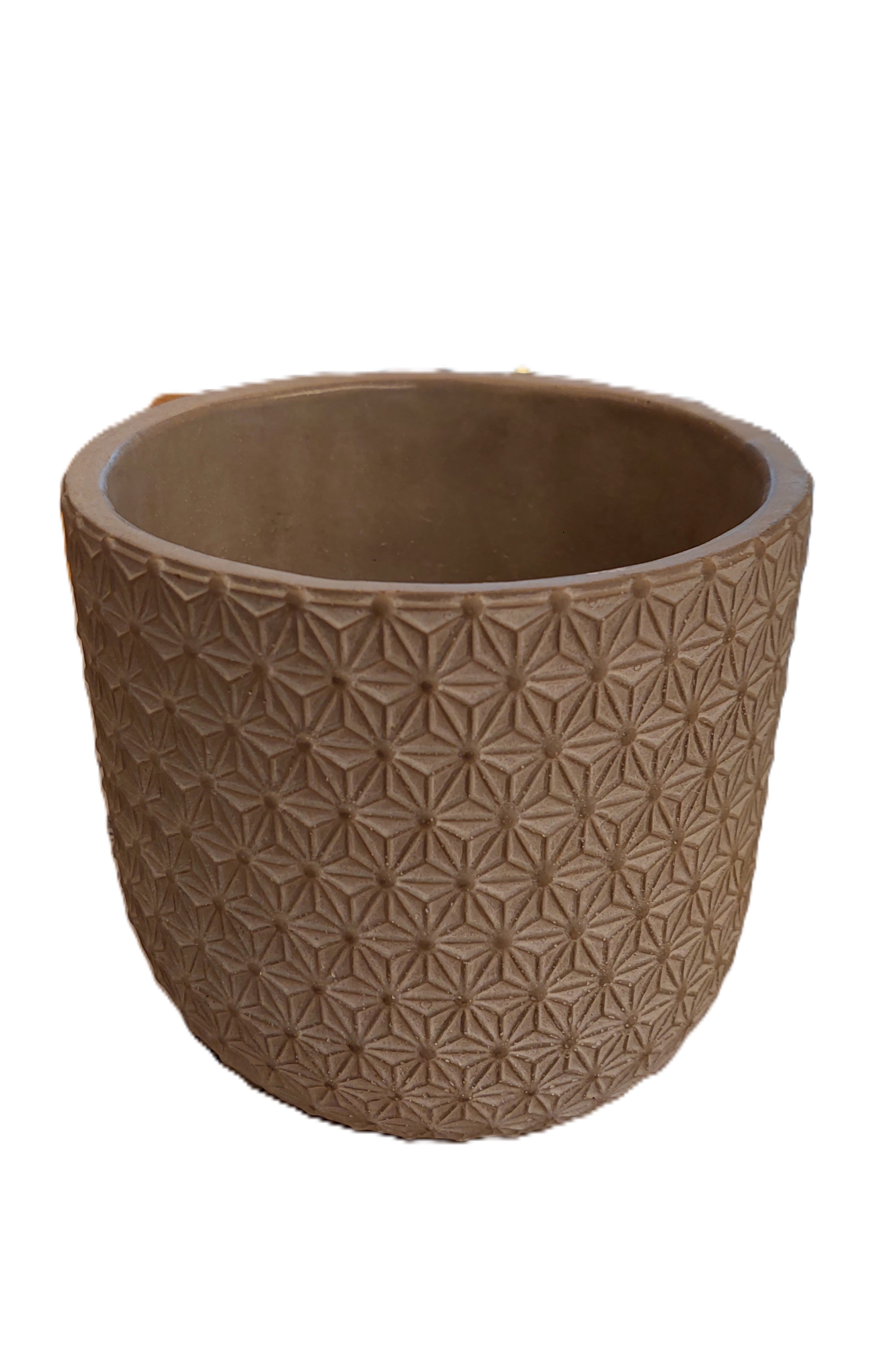 Decorative cachepot ETNO 13*13cm.with an embossed pattern in grey color, ideal for indoor plant decoration.