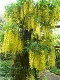 Deciduous tree with a spherical crown reaching a height of 5-6m diameter and 4m. Bring lightweight composite foliage with dull pale color. Magnificent flowering in May with bright bold yellow flowers shaped trusses length 50cm. Kind enough without requirements in soil and sun exposure. Especially interesting to poor fruiting since it was toxic fruits as the basic kind. Planted in pots and gardens, single.