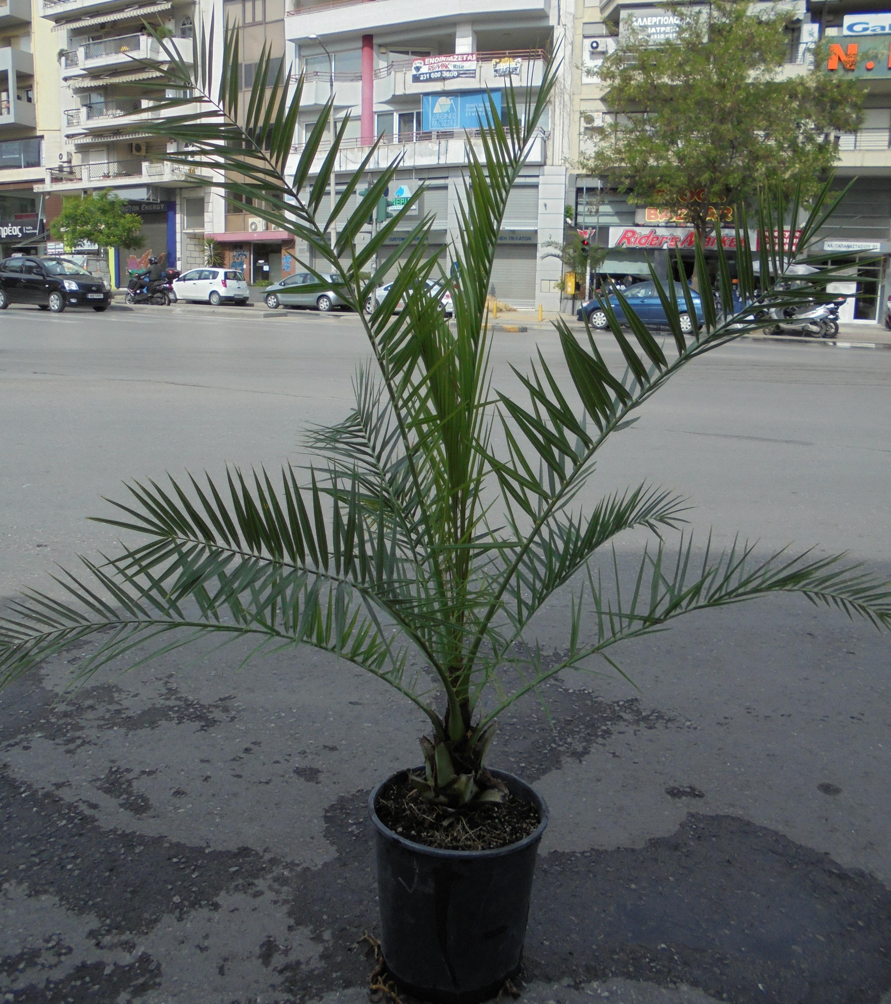 Robust palm tree reaches a height of 12-15m and a diameter of 8-10m. It bears bright green pinnate leaves and produces small yellow fruits later. Suitable for all soils in full sun. Planted in gardens in individual rows and clusters. Withstands temperatures as low -8/-10 degrees.